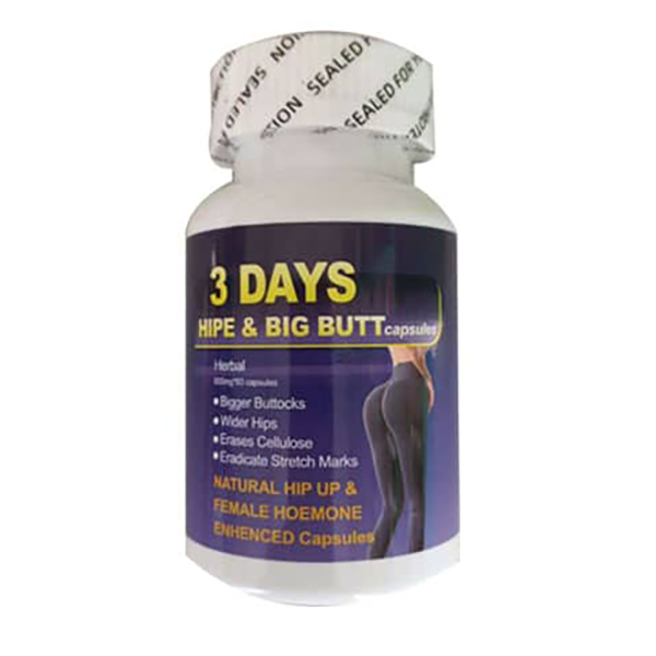 3 days and big butt capsule is a natural hip up and hormone enhancement capsule designed for butt, hips and thighs.